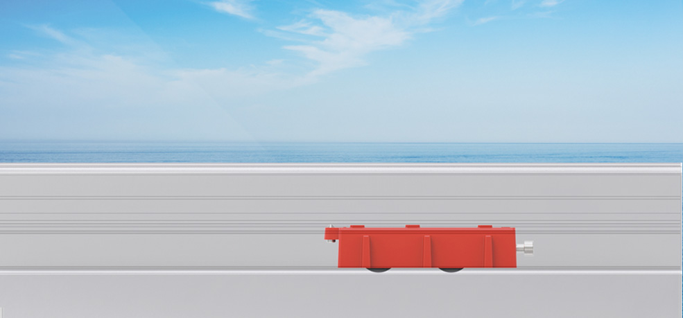 Los carros están disponibles en tamaños diferentes para permitir distinto ancho de rueda y ser usados en cualquier tipología de rail. La banda de rodadura está fabricada en POM (poliacetal) garantizando de esta forma su durabilidad y evitando el deterioro y desgaste de ruedas y rail.